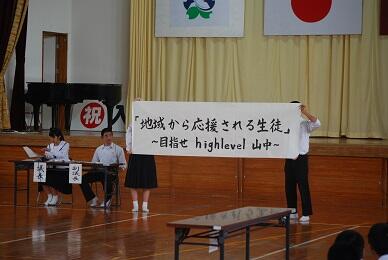 「人と人 笑顔でつなぐ 山之口」の実現に向けての取組として「あいさつ運動」を行います。