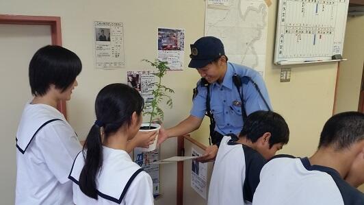 ※写真は表彰に来ていただいた、宮崎県警察本部新島警務部長です。