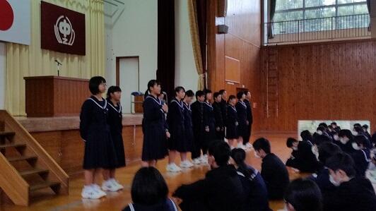 各学年の代表が新年の抱負などを述べ、その後生徒会役員が一人一人あいさつをしました。