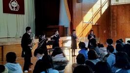 バイオリン、ピアノ、尺八、チェロ、パーカッションによる演奏でしたが、生の迫力に生徒たちは圧倒されていました。