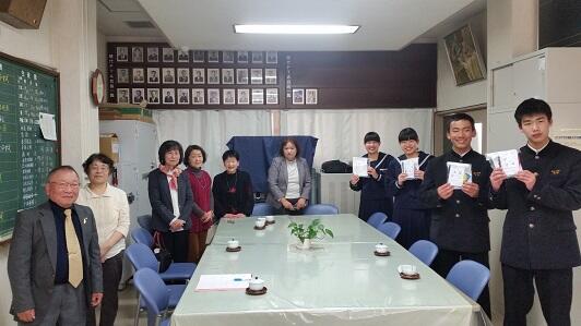 山之口更生保護女性会の、原田マサ子さん、田邊美喜子さん、鵜戸西雪子さん、大迫ひとみさん、松元江美子さん、そして保護司会長の山内正信さんが来校されました。