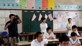 これは、総合的な学習の時間の中で、本校の生徒が点字やアイマスクの体験学習を行うというものです。どうぞご覧ください。