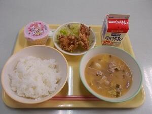 3月15日(火)は、卒業式前日で、予行練習や準備を行いました。また、給食の献立は「卒業お祝い行事食」として、ご飯、牛乳、キムチ汁、鶏の唐揚げ、茹でキャベツでした。3年生にとっては、中学校最後の給食となりました。みんな美味しそうに食べていました。
