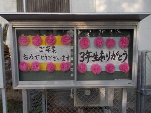 3月16日(水)に、規模縮小、時間短縮ではありますが、第75回卒業式を行いました。卒業式は、卒業証書授与、学校長式辞、記念品贈呈、在校生送辞、卒業生答辞、校歌斉唱を行い、約50分で終了しました。その後、各学級で最後の学級活動を行い、下校となりました。