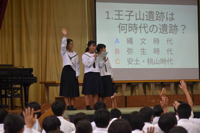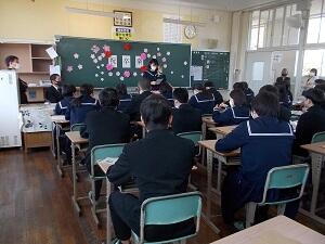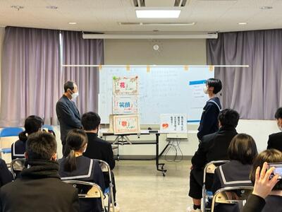 今年はぜひ再開したいと思い、夏に計画されていたのですが、コロナの感染が拡大したため2月に実施することになりました。1月18日(水)には、まちづくり協議会の方から生徒会役員に弥五郎塾や山之口地区の特徴について説明をしていただきました。
