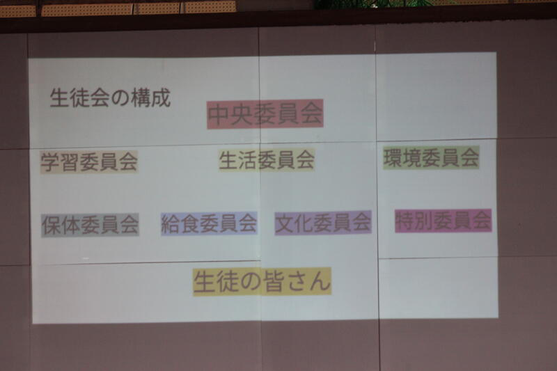 対面式では、年間行事計画や生徒会の説明があり、1年生は一生懸命に説明を聞いていました。これからの中学校生活が楽しみです。