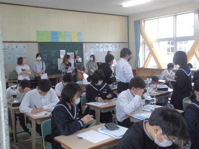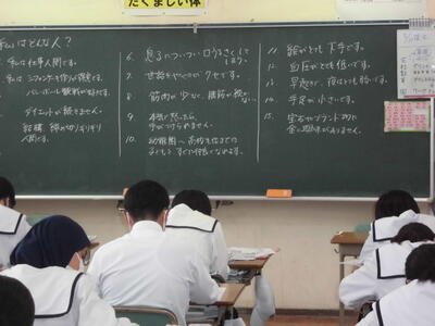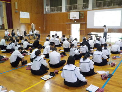 後半は、全体討議で「山之口中学校をさらにレベルアップするにはどうすればよいか」を話し合いました。
