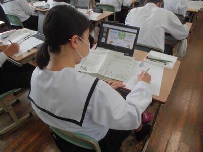 3年生「福祉の仕事を知ろう」・・・福祉体験活動へ向けて、福祉の仕事についてタブレットで調べました。