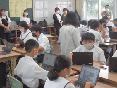 協議の前に、デジタル教科書を使った授業など、全学級の授業を参観していただきました。