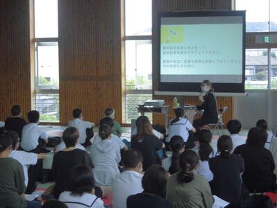 19日は社会福祉協議会の方に来ていただき山之口地区の福祉の現状について講話をしていただきました。