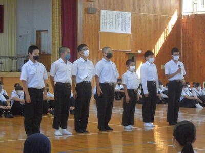 そして、新生徒会役員の皆さん、山之口中学校生徒会の伝統を受け継ぎ、更なる進歩・発展をよろしくお願いします。