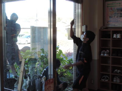 花植えや窓ふき、駐車場の清掃を行いました。みんな一生懸命、清掃活動に取り組みました。