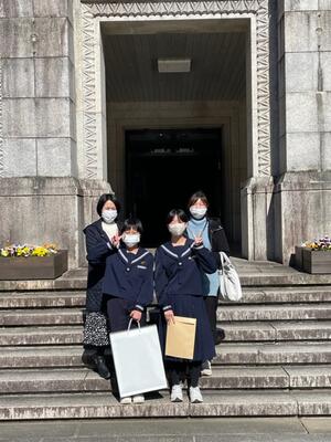 平和式典では全員で心を込めて準備をした千羽鶴を奉納し、平和を祈って黙祷を捧げました。また、長崎原爆資料館や記念碑を訪れ、生徒は原爆の恐ろしさや平和の大切さを間近に感じることができました。