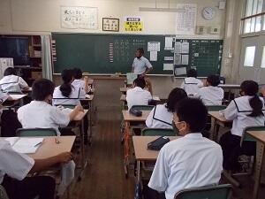 10月15日(金)の6校時に、「薬物乱用防止教室」が行われました。都城警察署から3名の方に来校いただき、薬物乱用防止に関する講話をしていただきました。正しい知識を身に付け、誘われてもしっかりはっきり断ることが大切とのお話がありました。最後に、全校保体委員長からお礼の言葉で締めくくりました。薬物乱用は、ダメ、ゼッタイ!