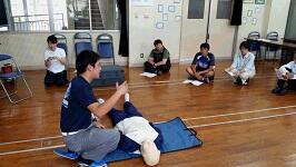 実際にダミー人形などを使って、実践的な研修を行うことができました。(T)