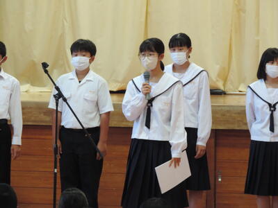 始業式が行われ、各学年と生徒会の代表生徒が2学期の抱負を発表しました。