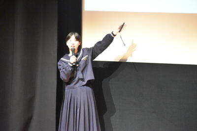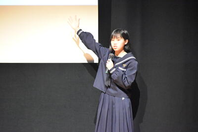 本校は、「花配り活動」についてプレゼンを行いました。花配り活動を始めた平成15年度の生徒会長さんにインタビューをしたり、動画を入れたりするなどの工夫をし、優秀賞をいただきました。