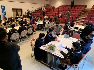 会では、山之口の特色や課題点について発表しあった後、まちづくり協議会の方々も加わって山之口の活性化策などについて全員で話し合いました。