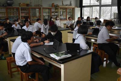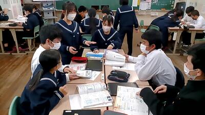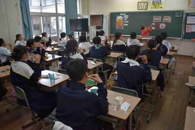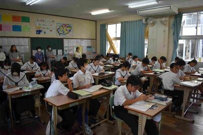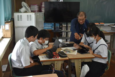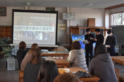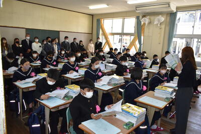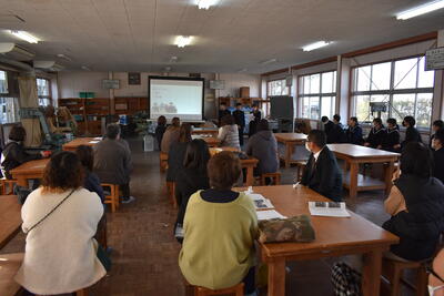 ↑ 3年生は地域の方々に学校へ来ていただき、「山之口について」探究学習を進めています。
