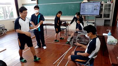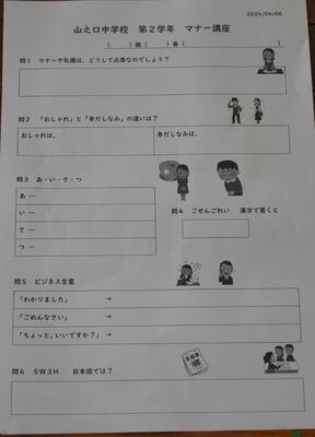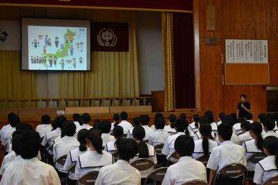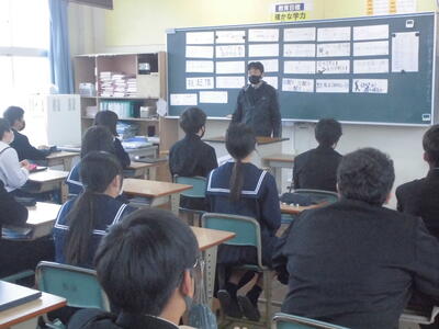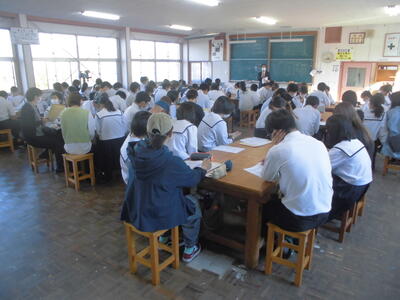 5月11日に、3年生は福祉協議会の方に来ていただき、山之口地区の福祉について講話をしていただきました。