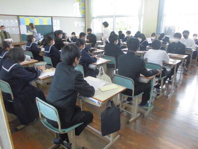↑ 2年生は「職場体験学習のまとめ」を発表し、当日発表する学年代表をみんなで選びました。