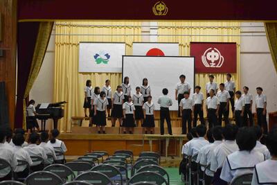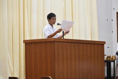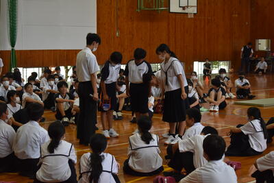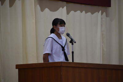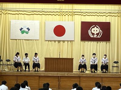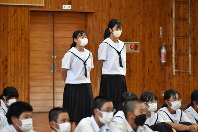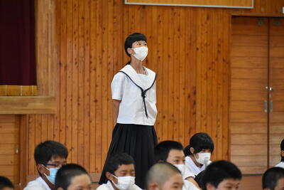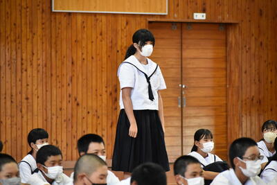 各学年と生徒会の代表生徒が2学期の抱負を発表しました。