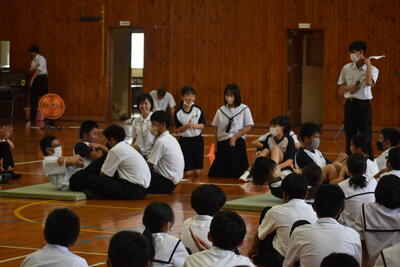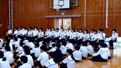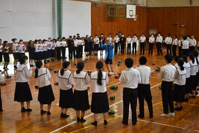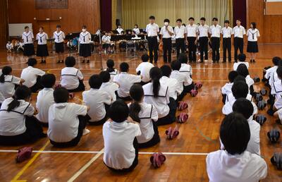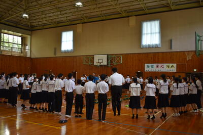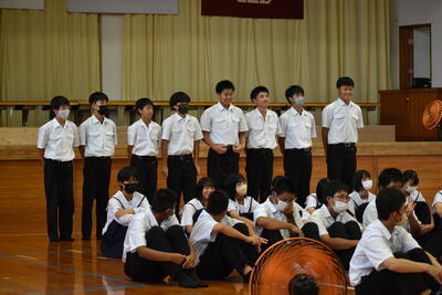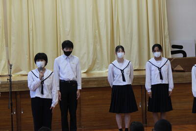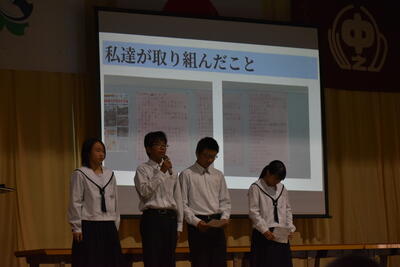 1年間山之口中学校のために活動してくれてありがとうございました。全校生徒からは感謝の拍手が送られました。