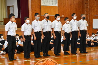 これから1年間山之口中のリーダーとして、みんなを引っ張って行ってください。
