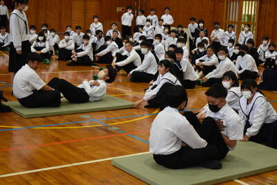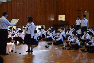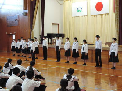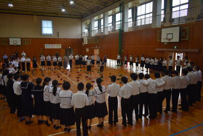 コロナも収束に向かい、久しぶりに体育館に集まって修了式を実施することができました。