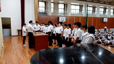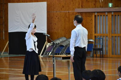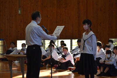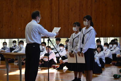 10月16日(水)に旧生徒会役員への感謝状授与と新生徒会役員の任命式・委嘱式が行われました。