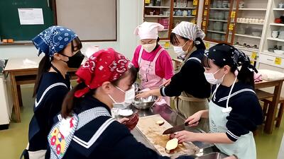 9月24日(火)と10月1日(火)には、文化発表会で展示する作品を本校の3年生と一緒に作成しました。