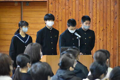 【1年生・2年生・生徒会 代表生徒による年間の反省と来年度の抱負】
