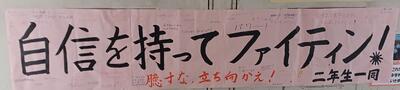 ↑ 2年生 実行委員によるスローガンの発表「しゅうがくりょうこう」