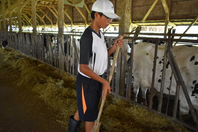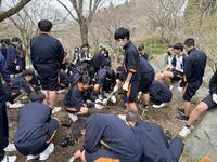 1年生は、サツマイモを植えるために、畑を整備しました。秋には収穫したお芋で郷土料理を作る予定です。