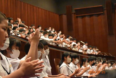 記念講演では、学び体験しながら、特に中学校時代の「毎日」という点を大切につないでほしいと、ときにユーモアを交えながら熱く語っていただきました。立志式では、代表生徒発表や2年生全員による「立志の誓い」、全体合唱などを堂々とすることができました。
