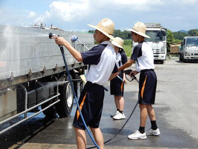 乗って来られた大型車両には、昼休み中の何人もの生徒が興味深く取り囲んでいました。