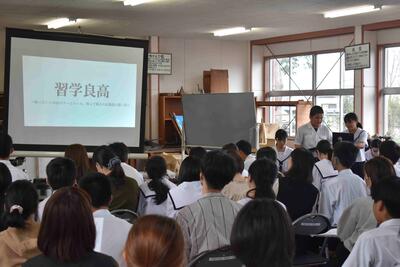 新2・3年生と生徒会の代表が新学年の抱負を発表しました。