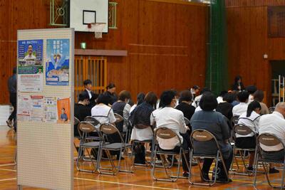 「ひなた場」とは、対話式のキャリア学習で、24名の地域の方に来校していただきました。