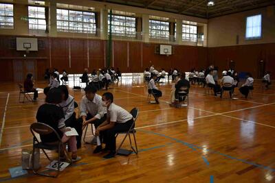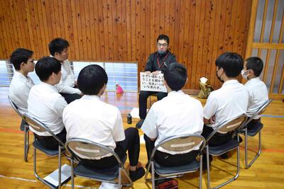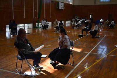 その後、地域の方と生徒の二人で、生徒が自分のこれまでの歩みやこれからの進路について対話をしました。