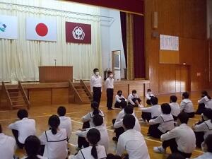 10月21日(水)5校時に、「薬物乱用防止教室」が行われました。宮崎県警本部、都城警察署から5名の方が来校され、薬物乱用防止に関する講話をしていただきました。正しい知識を身に付け、誘われてもしっかりはっきり断ることが大切とのお話がありました。最後に、全校保体委員長からお礼の言葉で締めくくりました。薬物乱用は、ダメ、ゼッタイ。