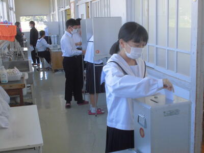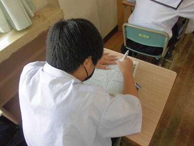 2月22日(火)に、本年度最後の参観日が学年別に時間をずらして行われました。2年生は、立志式及び総合的な学習の時間の発表を実施しました。立志式では、生徒一人ひとりが、色紙に漢字1文字を書き、「色紙に込めた思い」として、これからの決意を述べてくれました。また、総合的な学習の時間にSDGsについて調べたことをグループごとに発表しました。新型コロナ感染拡大防止の対応を行いながらの実施でしたが、緊張感に包まれつつ、学びのある立志式となりました。