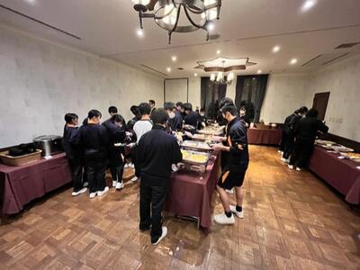 初日の宿は、海の見える「i-land Nagasaki カゼホテル」さんです。海を見渡せる素敵な宿です。生徒たちは、景色はもちろん友達との時間を楽しく過ごしています。ホテル到着後、バイキング式の夕食を済ませ、今日の振り返りをしました。