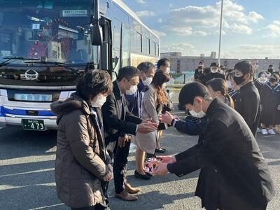 解散式では、3日間旅を盛り上げてくださった添乗員、バスガイド、運転手の方々にお礼をし、集団行動や生活面などさまざまな面での成長を今後に繋げていくことや、平和の尊さなどについて再確認しました。