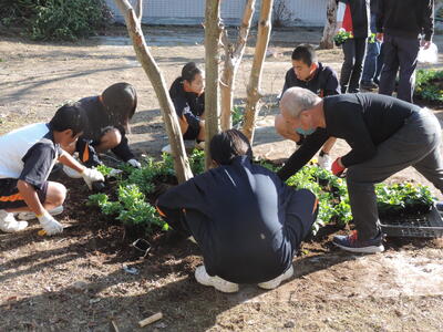 花植えや窓ふき、駐車場の清掃を行いました。みんな一生懸命、清掃活動に取り組みました。