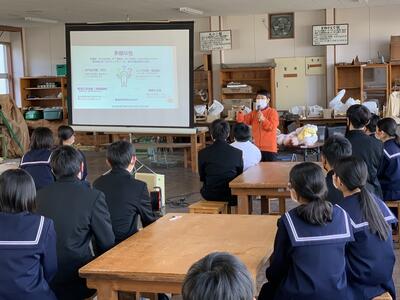 今年はぜひ再開したいと思い、夏に計画されていたのですが、コロナの感染が拡大したため2月に実施することになりました。1月18日(水)には、まちづくり協議会の方から生徒会役員に弥五郎塾や山之口地区の特徴について説明をしていただきました。
