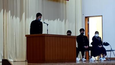 式の中では、各学年と生徒会の代表生徒による3学期の抱負が述べられました。