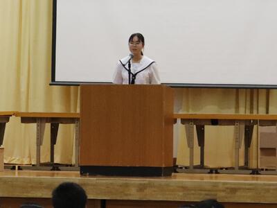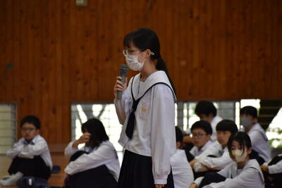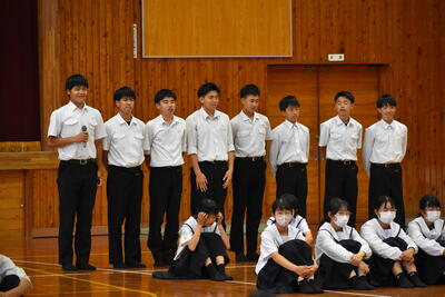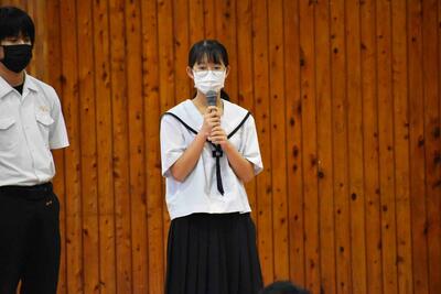 各学年と生徒会の代表生徒が2学期の抱負を発表しました。