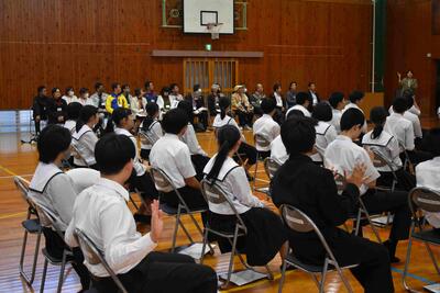 1年間山之口中学校のために活動してくれてありがとうございました。全校生徒からは感謝の拍手が送られました。