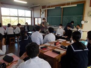 10月28日(木)の6校時に、第2回目の研究授業を実施しました。校内研修の取組の一つで、平成30年度から、全ての先生方が年1回の研究授業を行っています。今回は、1年数学科、2年英語科、3年国語科の授業でした。本年度の研究の柱であるアウトプット及びICT活用が位置付けられた授業が展開されました。授業後のワークショップ型授業研究会も熱心に協議がなされました。