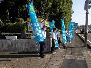 7月13日(火)、15日(木)、16日(金)の3日間、山之口地区まちづくり協議会主催のあいさつ運動が行われています。中学生が、出身小学校へ分かれて行き、小学生や地域の方と一緒に、あいさつ運動を行います。